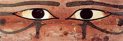 Se solía usar los dos ojos pintados en la parte izquierda de los sarcófagos a modo de protección, especialmente durante el periodo intermedio.